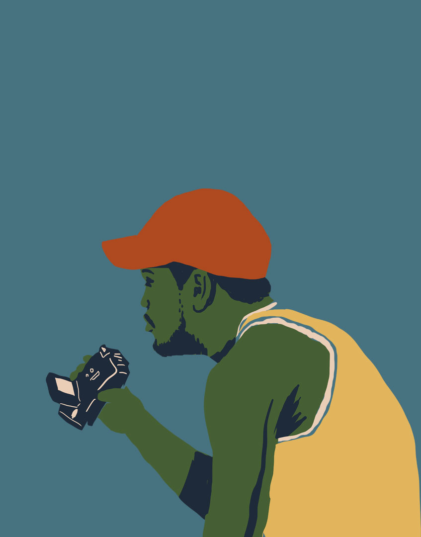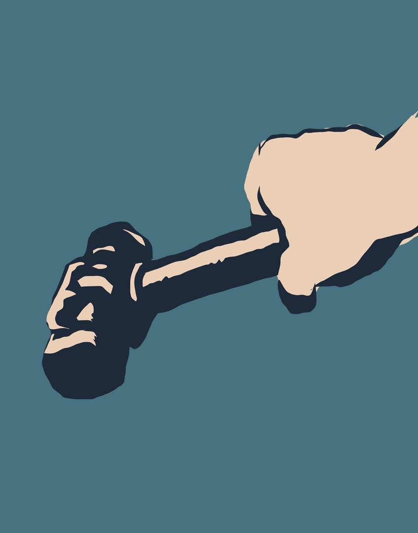 Um grupo de jovens munidos de ferramentas, pedras e pedaços de pau. Uma sequência de fotos em preto-e-branco.